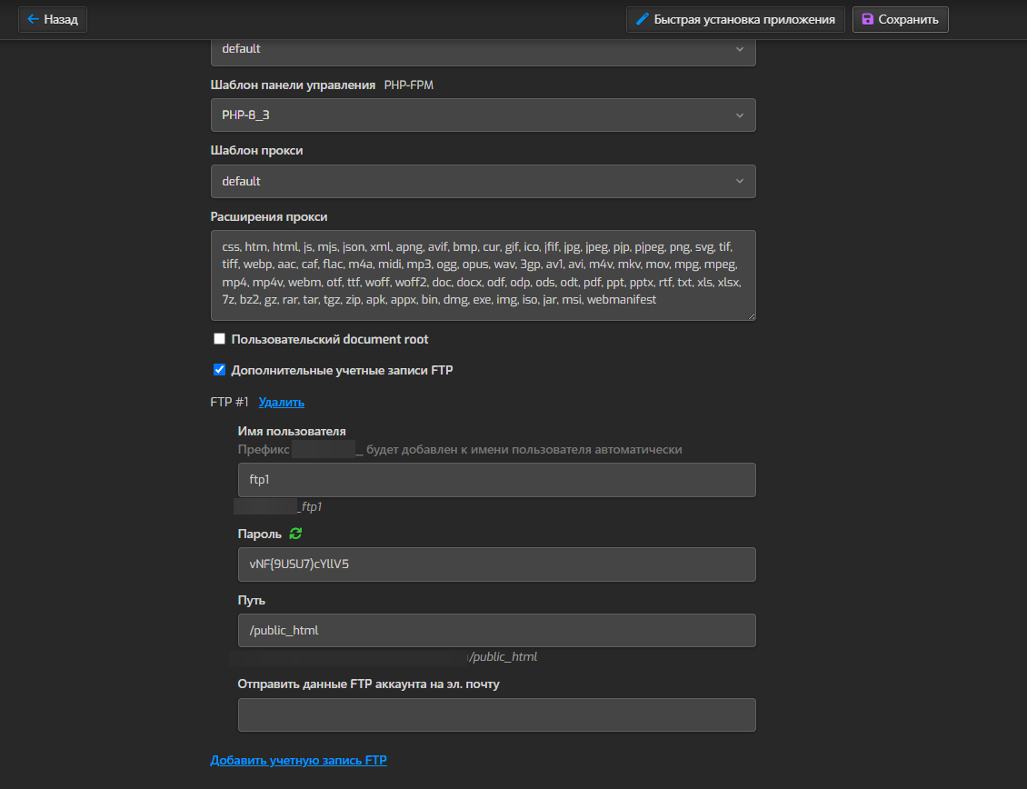 Отметить пункт «Дополнительный FTP аккаунт» (Additional FTP accounts).